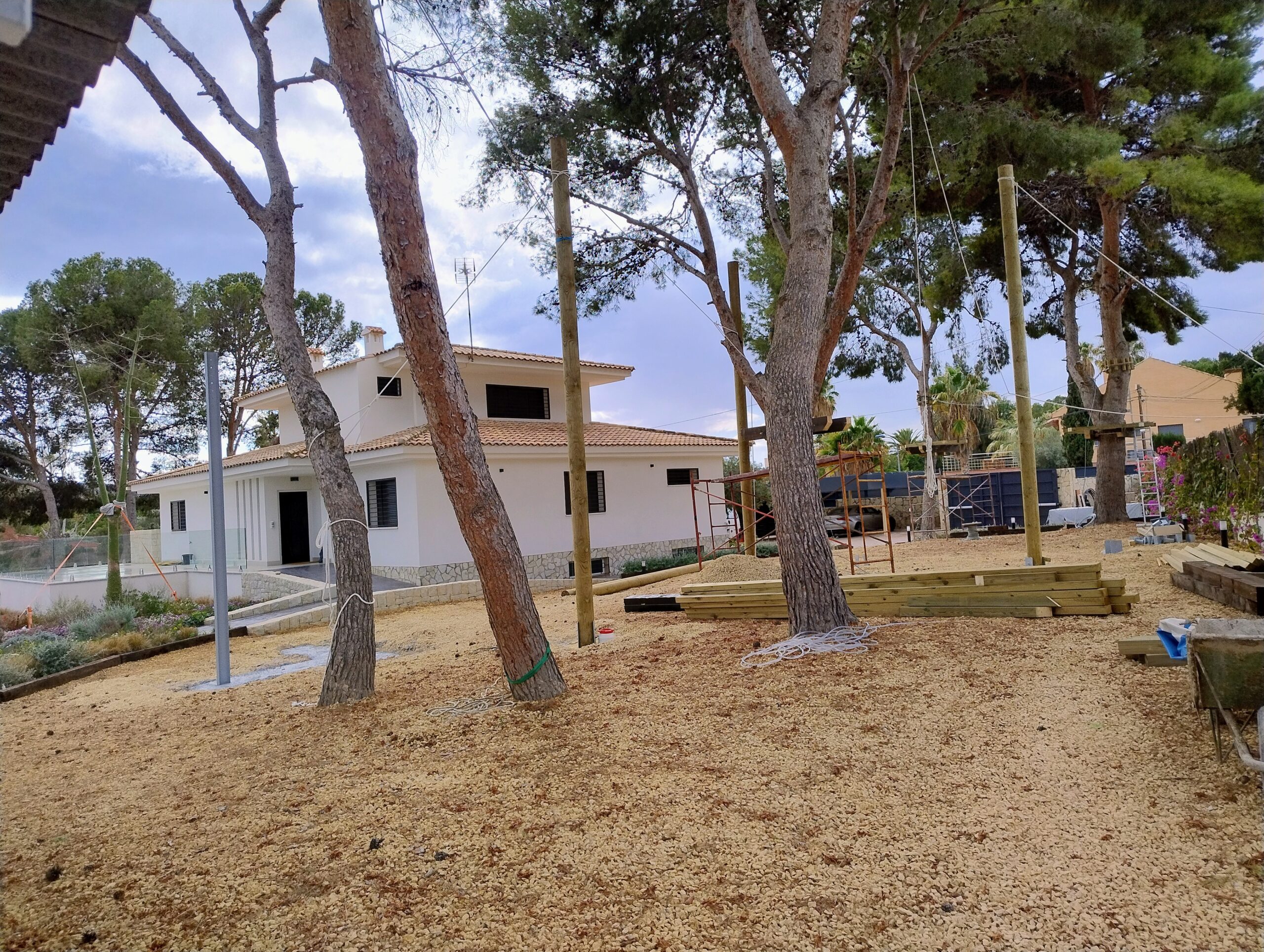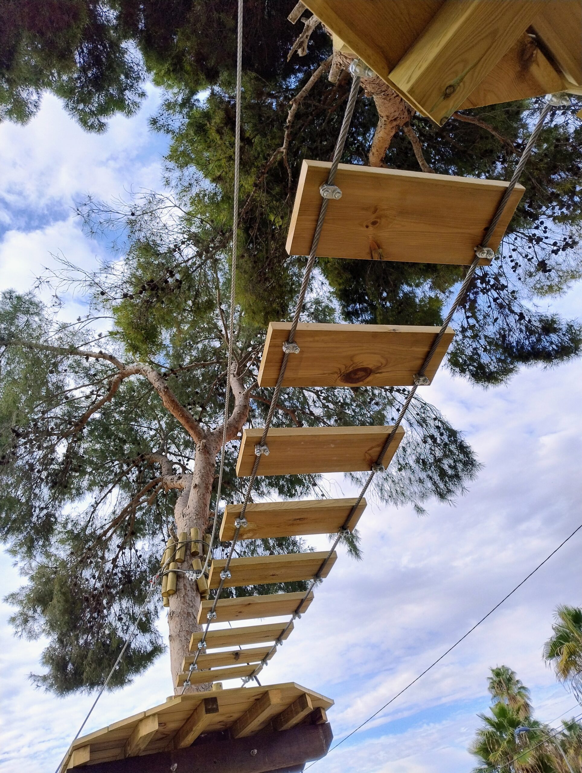 Todo es posible: una casita cerca del suelo, a dos metros de altura, un recorrido entre árboles una pasarela de madera, redes de descanso… Lo que necesites